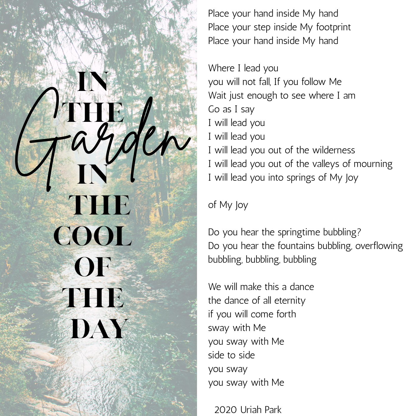 In The Garden, In the Cool of the Day Jan 24 Written By Uriah Park live from the House of Prayer from May 2020 Uriah Park